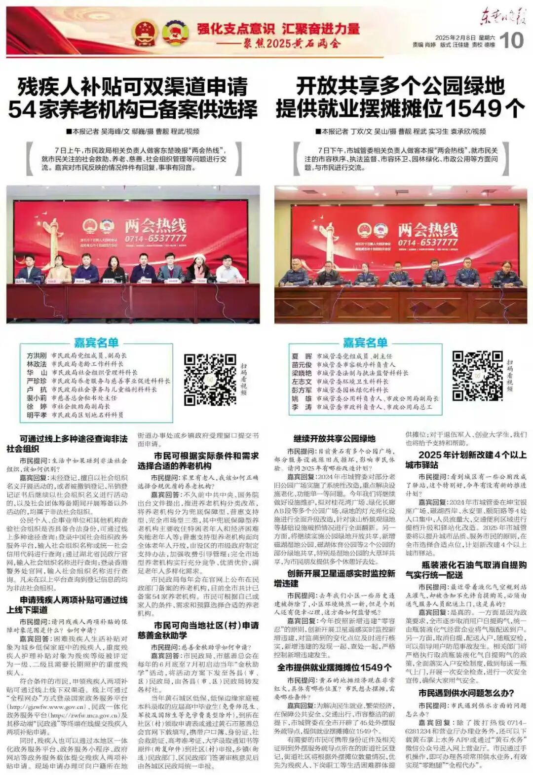 欢迎您拨打“两会热线” 0714-6537777或6363110,说出您的想法与期待。每日具体接听部门与时间,敬请关注市融媒体中心发布的“两会热线”预告。我们期待您的声音,共同为城市发展建言献策。