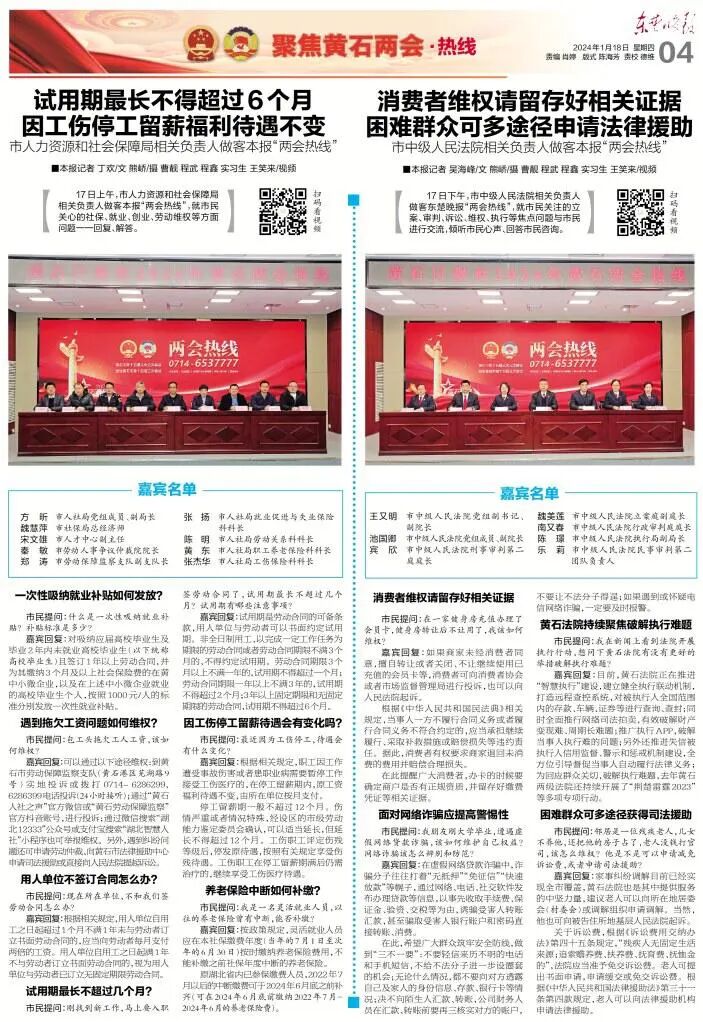 今日(13日)14:30—15:30,黄石市教育局和各县(市)区教育局相关负责人做客“两会热线”。