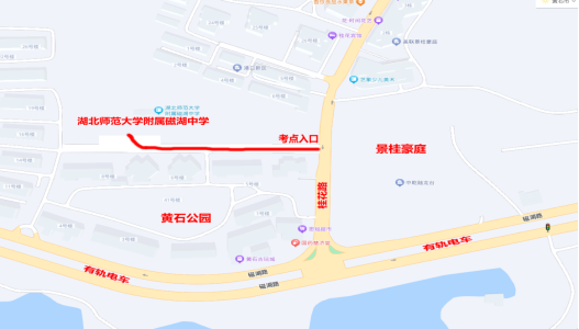 ②公交车路线:考生可乘坐2路、6路、23路、27路公交车到桂花路南路口站下车,也可以选择乘坐现代有轨电车1号线到桂花路磁湖中学站下车,步行至磁湖中学考点。