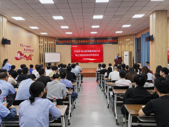 9月25日,开发区・铁山区装备制造行业电工班项目化培训开班仪式,在湖北东贝机电集团股份有限公司举行。此次培训由市、区人社局联合举办,聚焦装备制造产业技能需求,以“强技能、育人才”为核心,为区域产业高质量发展注入技能动能。辖区装备制造行业 5家牵头企业——东贝集团、航天电缆、三丰智能、三环锻压、智慧光子参加开班仪式。