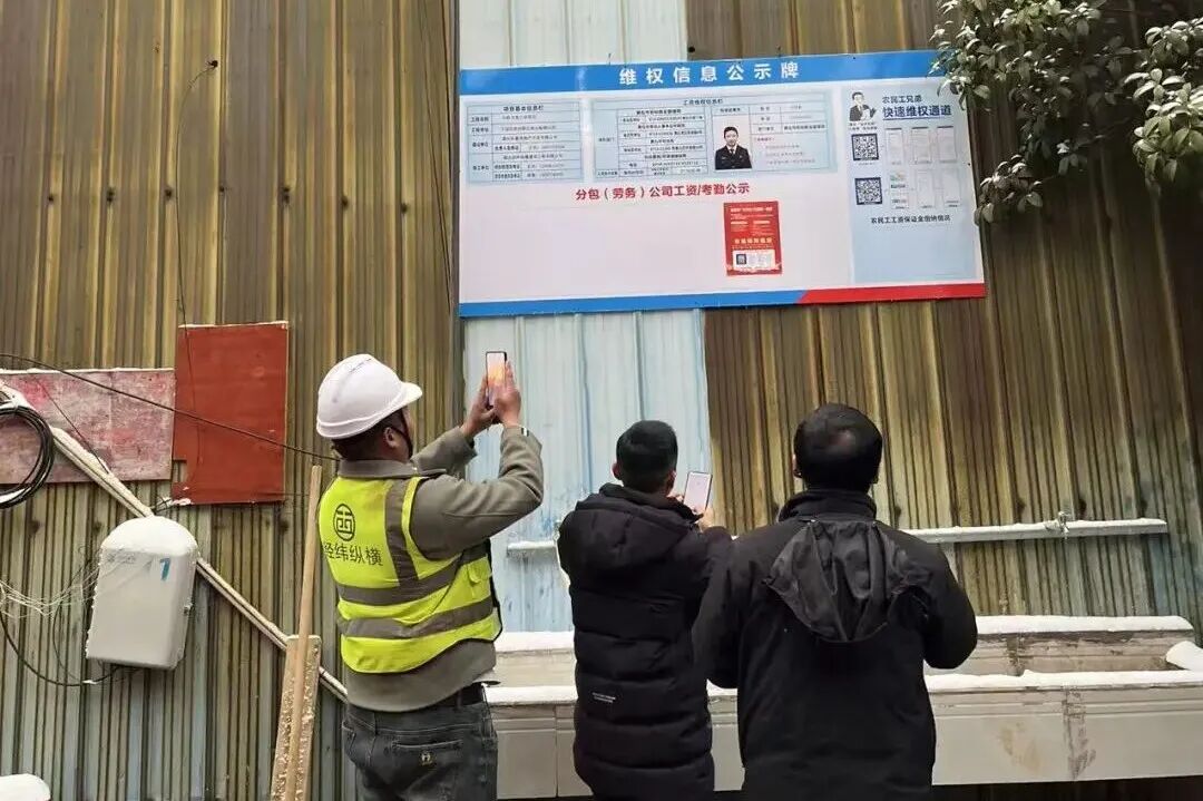 各片区监察员前往项目工地广泛张贴《致全市广大农民工兄弟的一封信》,告知线上线下投诉举报渠道,推广使用劳动保障维权“二维码”,扫码即可反映问题,实现“指尖上的维权”,保持24小时投诉举报渠道畅通。