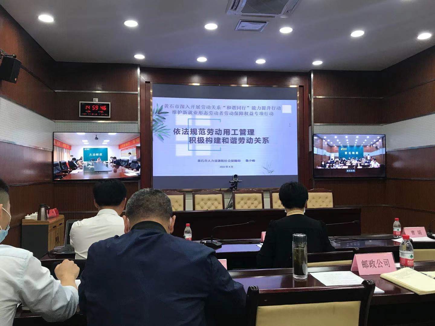 近日,黄石市人社局联合邮政共同开展“快递员权益保护、依法规范劳动关系”专题培训会,切实维护新就业形态劳动者劳动保障权益。全市邮政、顺丰、中通、圆通、菜鸟驿站等快递企业负责人及从业人员参加。