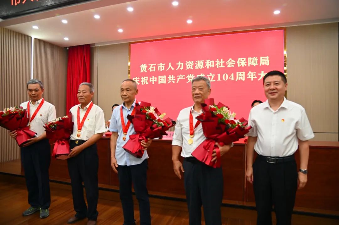 局党组书记、局长黄士华为老党员代表颁发“光荣在党50年”纪念章