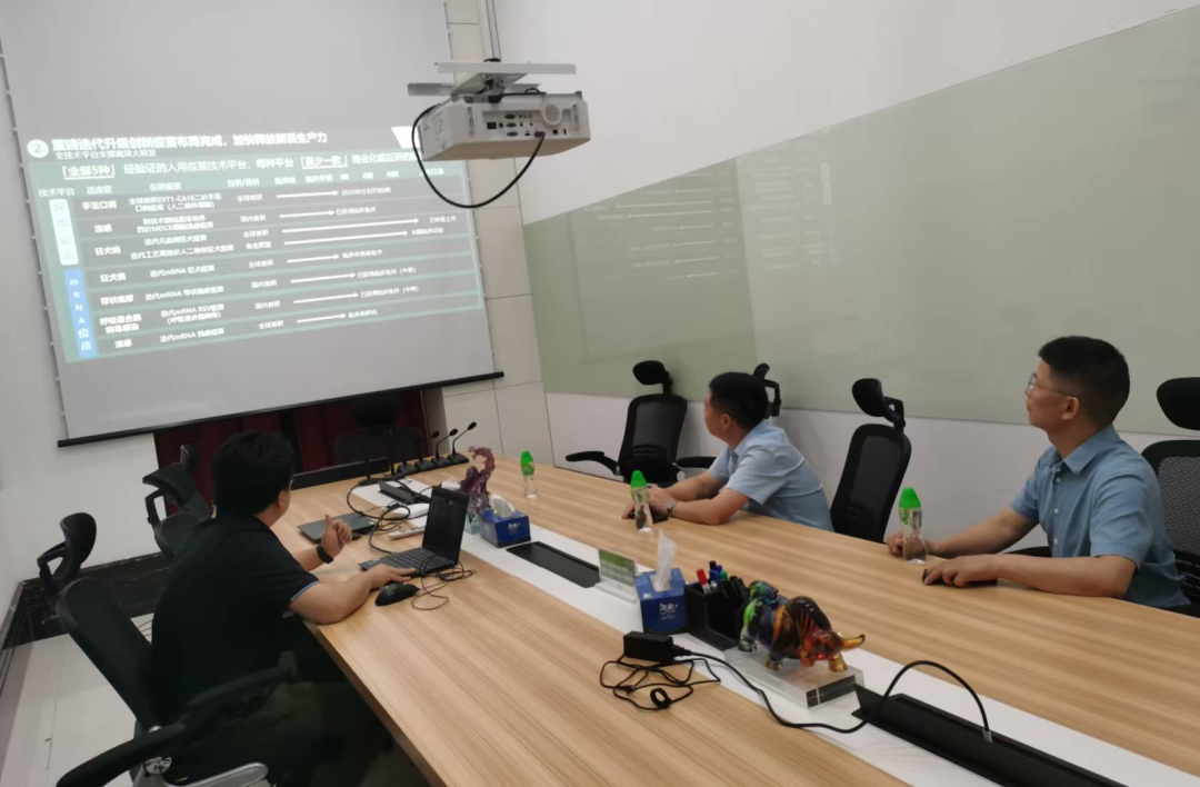 在上海,招商专班拜访了某疫苗股份有限公司,该公司是中国大型全产业链民营疫苗集团,系中国第二大民营第一大疫苗集团。招商专班详细介绍了我市产业、区位优势及营商环境建设情况。企业副总裁、首席投资官介绍了该公司战略发展情况的同时,重点介绍了公司在华中地区投资项目有关计划,恳请地方政府给予支持。招商专班对企业提出的相关问题做了详尽解答,告知企业我市真金白银扶持药品上市许可持有人发展的13条措施,助力打造国内生物医药产业聚集地,并热情邀请该企业专家团队适时来我市实地考察。