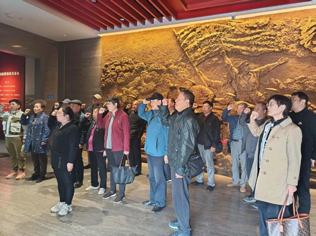在汀泗桥战役纪念馆,老同志们通过历史图片、实物史料,深入了解叶挺独立团等革命先烈的英勇事迹,重温那段艰苦卓绝的革命岁月。在庄严肃穆的党旗前,全体老党员重温入党誓词,铿锵誓言回荡在纪念馆中,彰显着退休党员不忘初心、永葆本色的坚定信念。