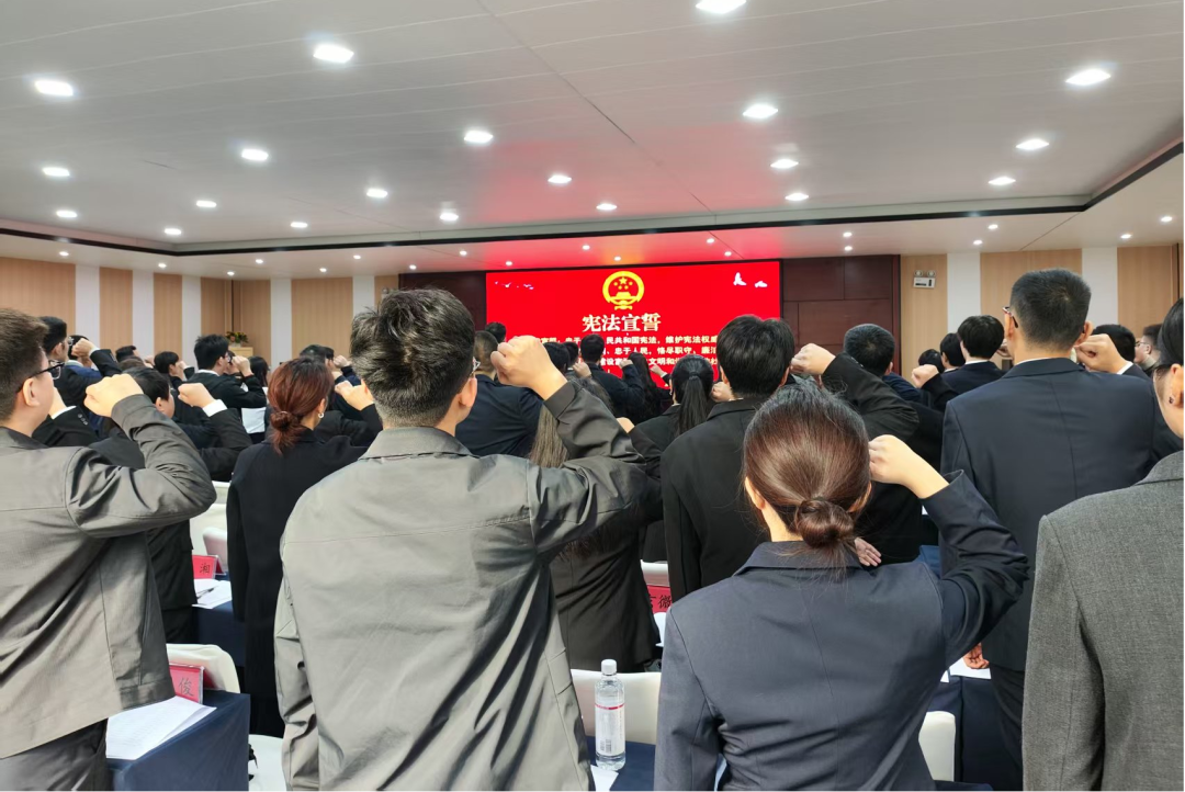 开班式后,全体参训学员庄严举行宪法宣誓仪式。面向庄严的国徽,学员们高举右拳、字字铿锵,郑重许下忠于宪法、遵守宪法、维护宪法、履行法定职责的承诺,以铮铮誓言筑牢法治信仰,为即将开启的事业单位工作生涯奠定坚实思想根基。