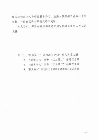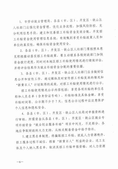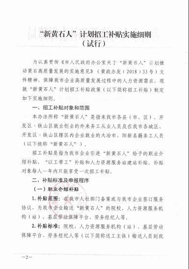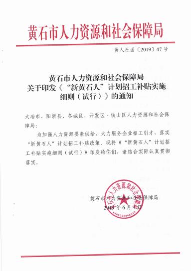 黄石市人力资源和社会保障局关于印发《“新黄石人”计划招工补贴实施细则(试行)》的通知