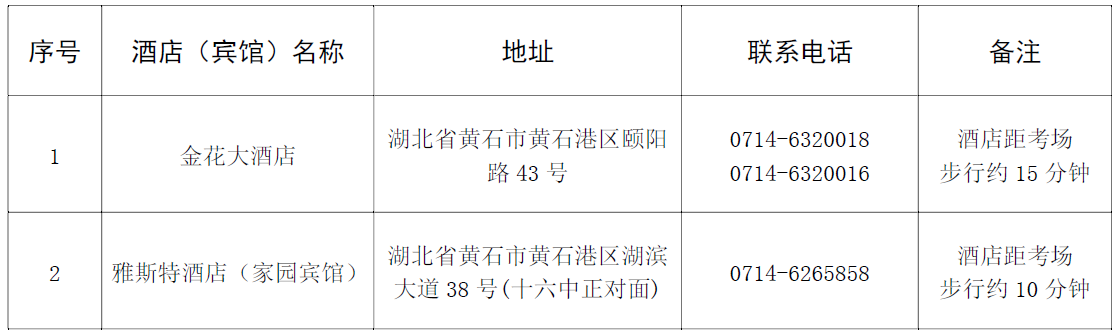 2.考点地址:湖北省黄石市西塞山区磁湖东路29号