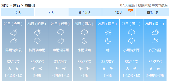 ·考点七天内天气预报