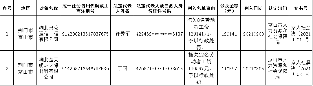湖北省2021年第四批重大劳动保障违法行为社会公布案例及拖欠农民工工资“黑名单”