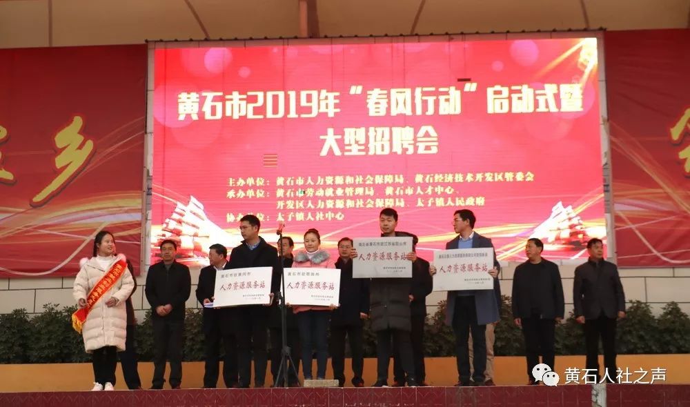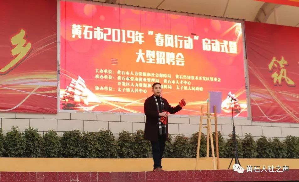 1月28日上午,黄石市经济技术开发区太子中学锣鼓喧天、热闹非凡!以“就业在家乡、筑梦在黄石”为主题的2019年“春风行动”启动仪式隆重举行。市委常委、常务副市长徐继祥,市政府副秘书长刘磬出席启动仪式。市委组织部副部长、市人社局局长柯月明主持活动。