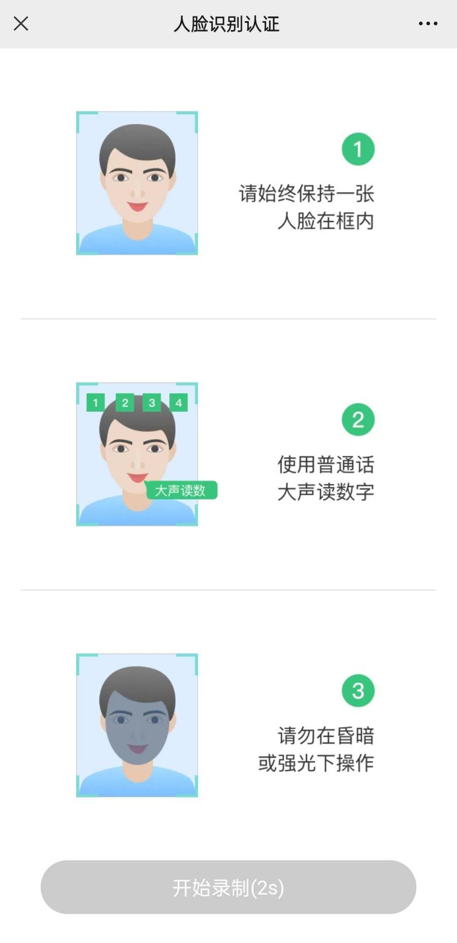 阅读认证提示,通过人脸识别,并完成认证。