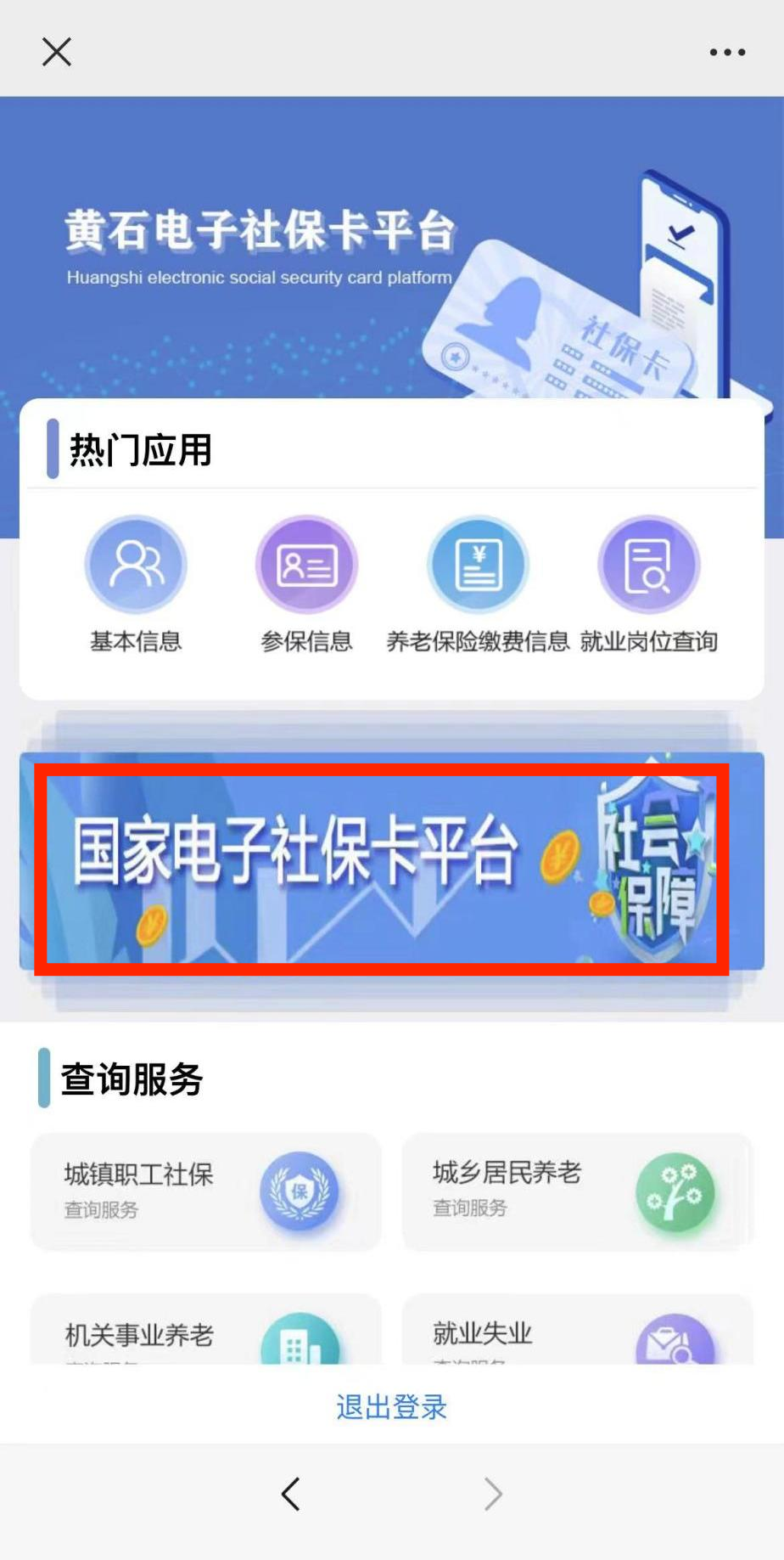 然后点击“国家电子社保卡平台”