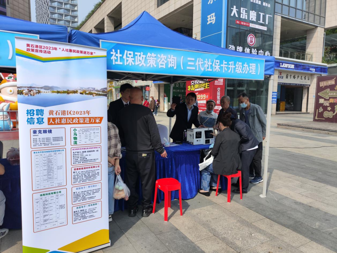在前期的调研中,黄石港区人社局了解到许多居民群众和企业对社保惠民政策掌握不够精准,有的多跑路,有的错过了缴费时间节点。为了让人社惠民政策真正进入千家万户,打通政策宣传的最后一公里,该局联合区税务局、建行黄石港支行、胜阳港街道及部分辖区招工企业,在黄石摩尔城广场举办“人社便民政策宣传进社区暨养老保险待遇领取资格认证工作”首场宣传活动,还专程邀请黄石市社保局相关人员现场指导。