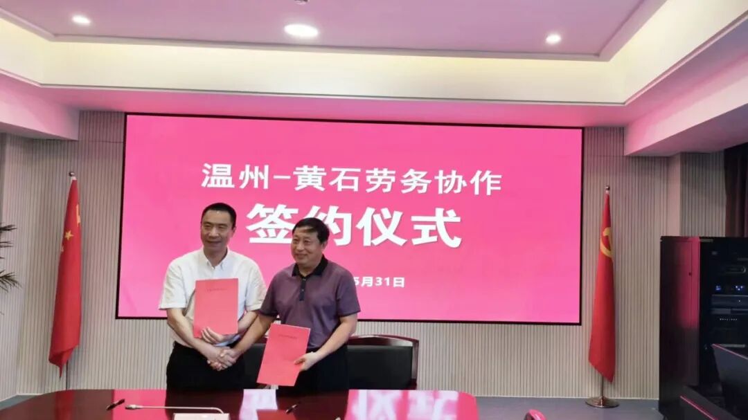 会上,黄石市人社局与温州市人社局,阳新县人社局与温州市鹿城区、龙湾区人社局分别签订了劳务合作框架协议。