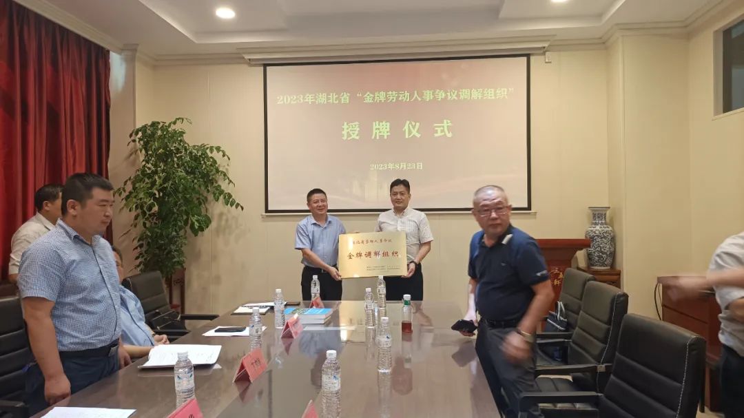 8月23日下午,湖北省劳动人事争议金牌调解组织授牌仪式在黄石三五轩饮食管理集团举行。市人社局党组书记、局长黄士华,市人社局党组成员、副局长丁文浩以及市总工会、市工商联、市企联(以下简称“三方四家”)有关领导、三五轩饮食管理集团负责人等出席授牌仪式并召开座谈会。