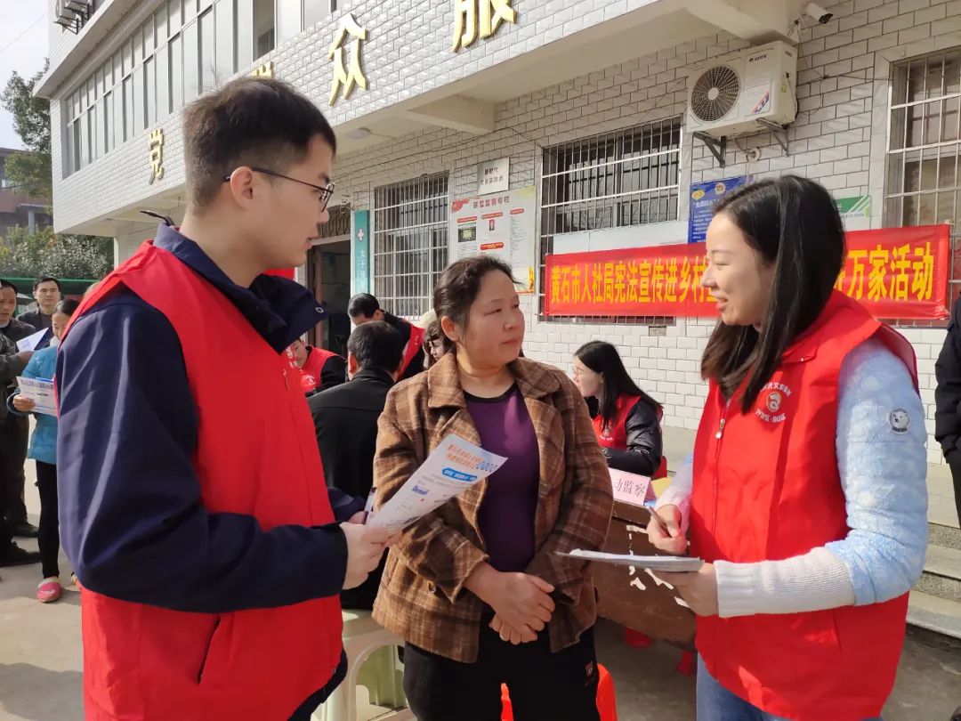 为弘扬宪法精神,维护宪法权威,12月6日,市人社局按第六个“宪法宣传周”部署要求,组织局系统团员青年、人社普法宣传骨干深入驻点村开发区·铁山区太子镇李姓村开展宪法宣传进乡村暨人社惠民政策进万家活动,提升村民尊法守法意识,扩大人社政策宣传覆盖面。
