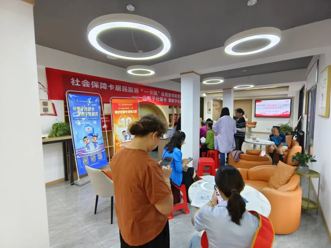 活动现场,工作人员通过悬挂横幅标语、发放宣传折页、现场解答及业务教办等方式,向居民详细介绍了电子社保卡的申领方法、使用场景以及在优化办事流程,提高社保服务效率等方面的优势,并手把手教部分老年人现场开通电子社保、操作社保资格待遇认证业务等,同时重点介绍了社保卡居民服务“一卡通”在交通出行、就医购药、人社业务、惠民惠农财政补贴资金发放等场景的应用。