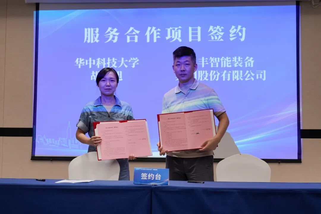 在全体与会嘉宾的共同见证下,三丰智能装备集团股份有限公司与华中科技大学胡中旭教授现场签署技术合作协议,西塞山区创发企业管理集团有限公司与中南财经政法大学刘春梅副教授达成项目合作意向。双方因活动“结缘”,以项目“牵手”,标志着双方在产学研深度融合方面迈出坚实一步,为企业创新和产业升级注入全新动能。