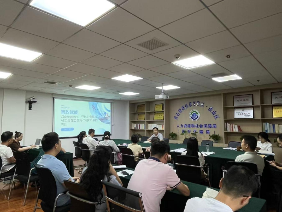为进一步提升干部职工的业务能力和办公效率,9月18日,开发区·铁山区人社局(医保局)举办了2025年第五期“人社业务大讲堂”。本期培训特邀人众人力资源有限公司总经理主讲,以“智政赋能:以DeepSeek、豆包为例解析AI工具在公文写作和PPT中的应用”为主题,为全局干部职工带来一场干货满满的技术分享。