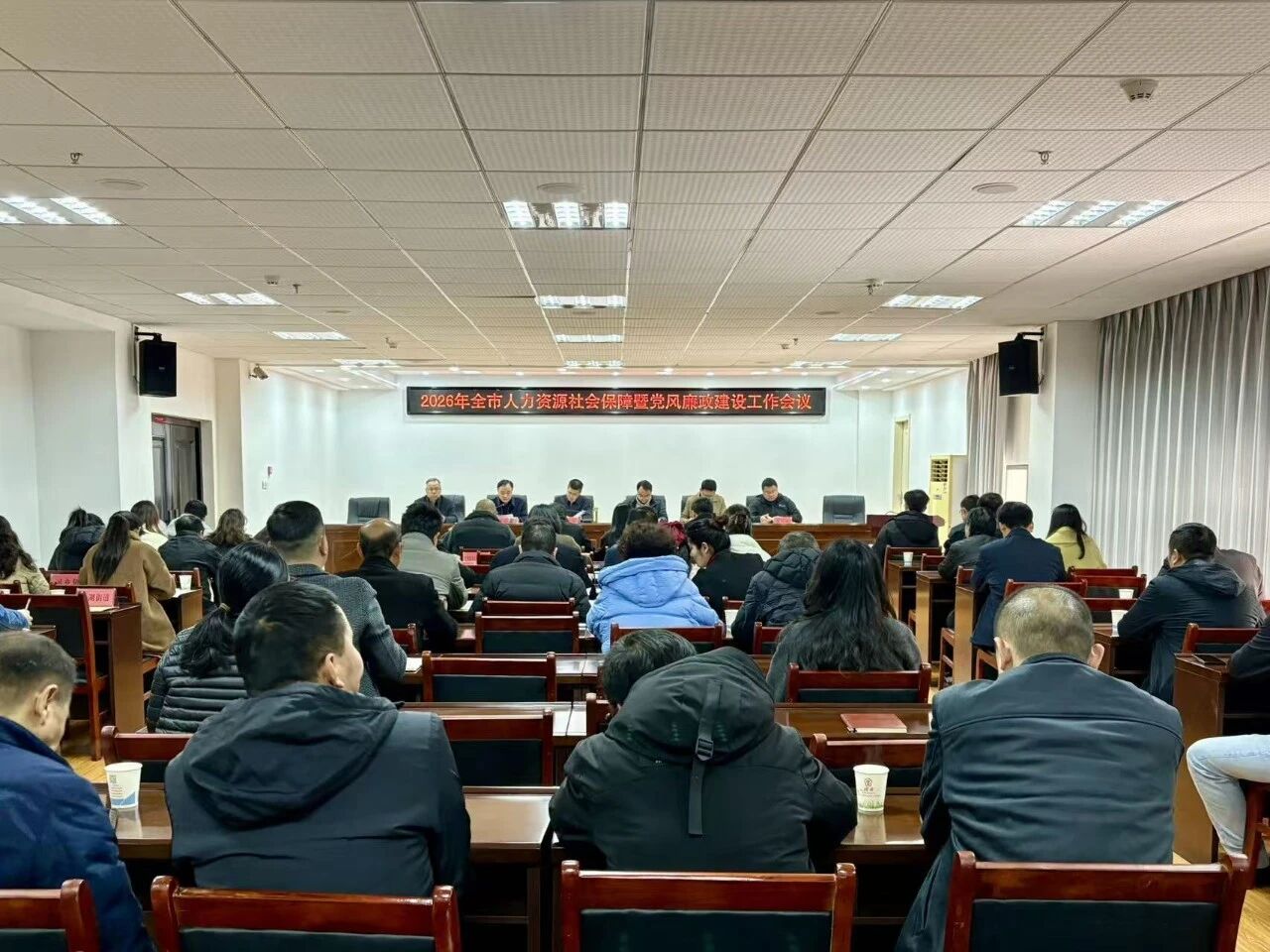会议传达了上级人社工作暨全面从严治党会议精神,宣读了“十四五”期间人社工作成果展示,通报表扬2025年度人社工作优秀股室和先进个人。相关单位负责同志围绕“开创2026年工作新局面”作交流发言,晒思路、亮举措、表决心。