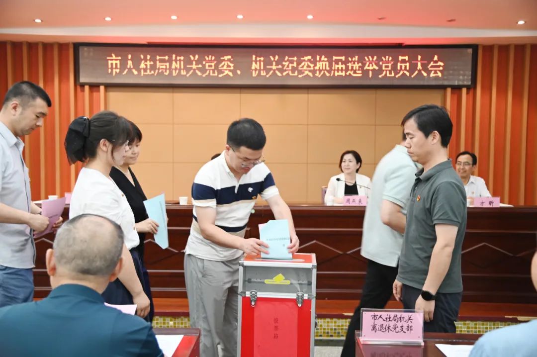 5月22日,市人社局召开党员大会,选举产生新一届机关党委、机关纪委。党组书记、局长黄士华出席会议并讲话,市人社局机关及局属二级单位全体党员、离退休党员参加会议。