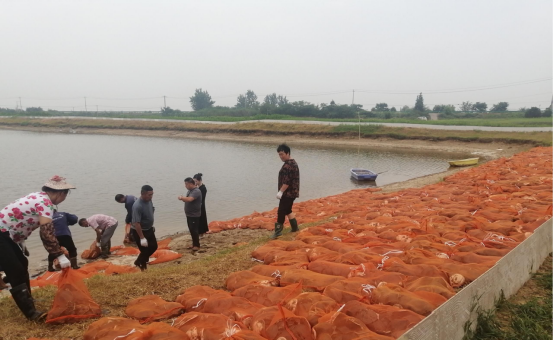 湖北富渔工人在投放甲鱼苗。通讯员程长珠 摄