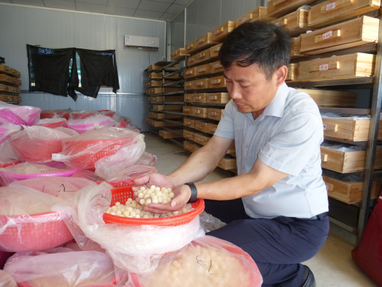 李名富查看甲鱼蛋的品质。通讯员程长珠 摄