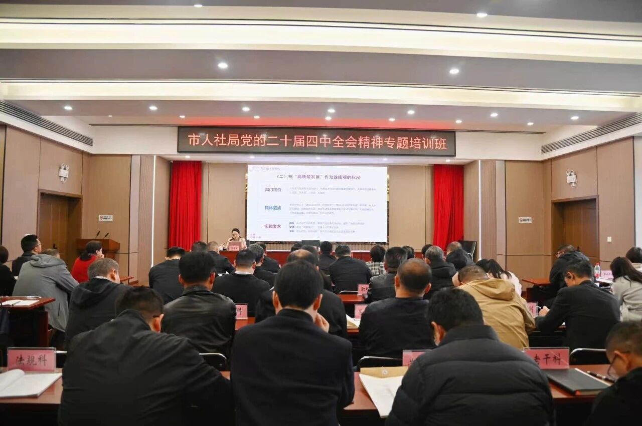 为全面深入学习贯彻党的二十届四中全会精神,进一步提升党员干部理论能力和业务践行水平,市人社局于3月30日——4月2日开展了为期四天的学习贯彻党的二十届四中全会精神专题培训活动。